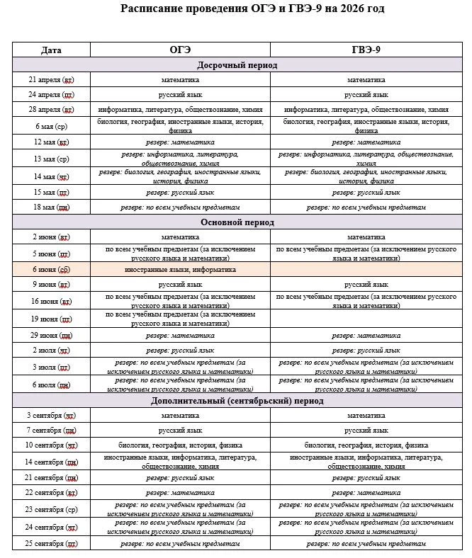 Расписание ОГЭ и ГВЭ-9 на 2026 г
